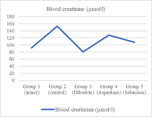 The use of hyposol and selenopyran also led to a decrease in blood creatinine concentrations (82.0±1.0 µmol/l and 110.2±5.5 µmol/L, respectively, versus 152.8±9.3 µmol/L without treatment) (Figure 4).